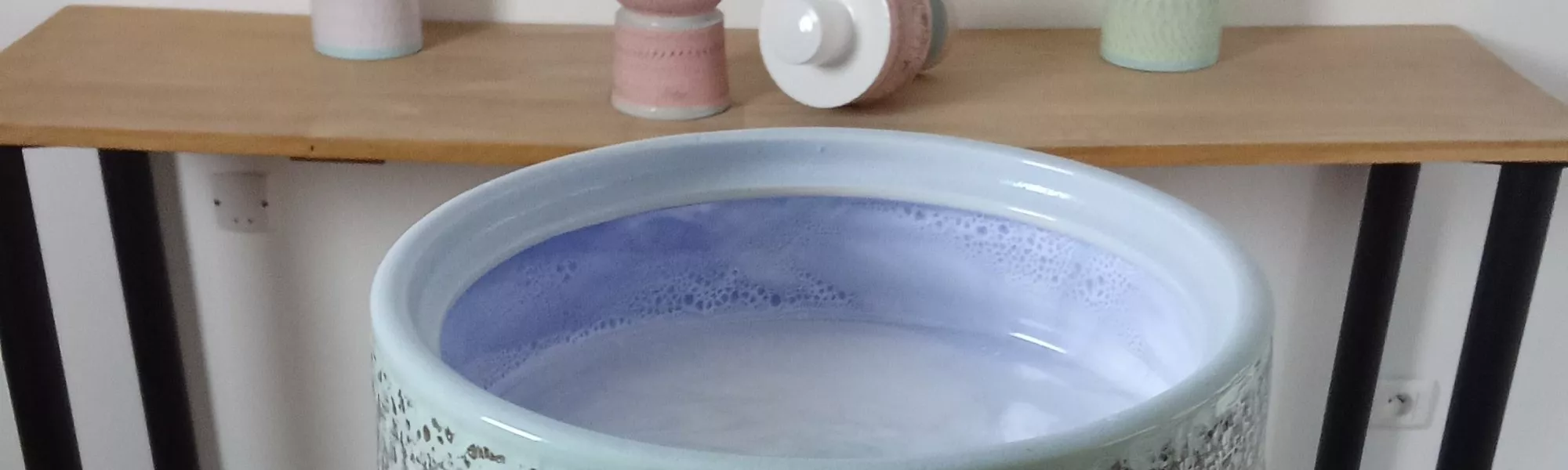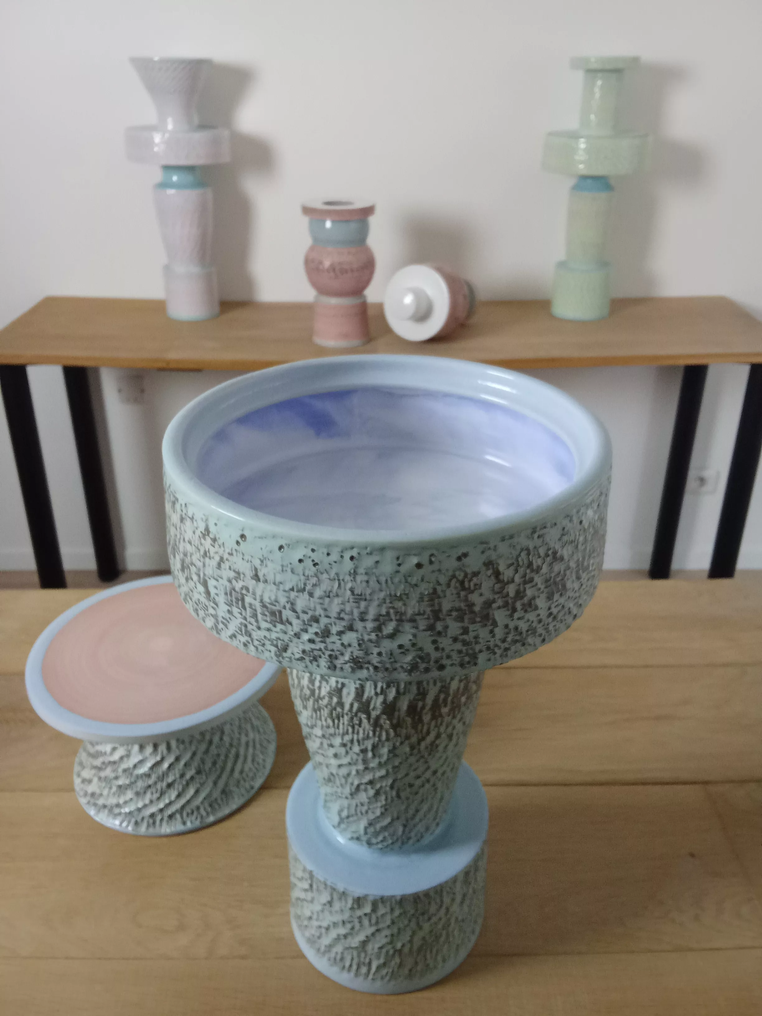 Ce contenant, suspendu, peut-être inutile, est le prétexte à des décors cachés, et le rappel de tous les espaces vides, inaccessibles souvent car la double paroi demeure la technique récurrente dans toutes mes céramiques.
