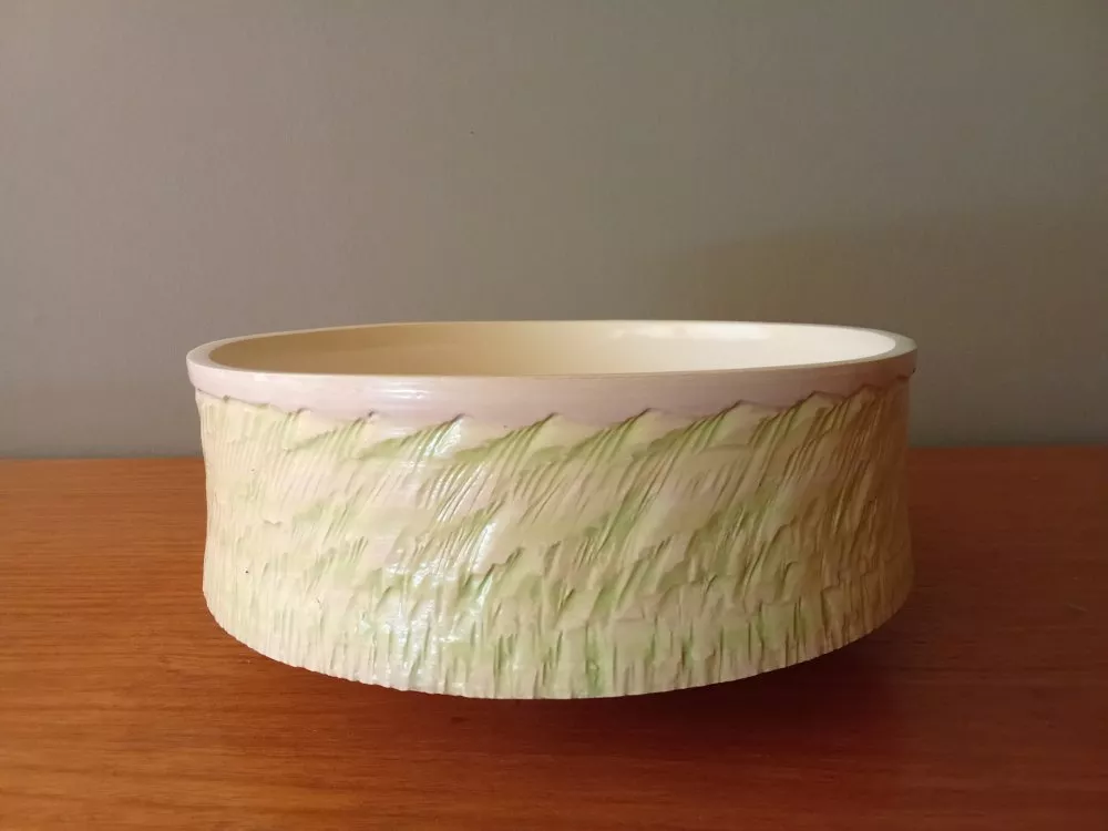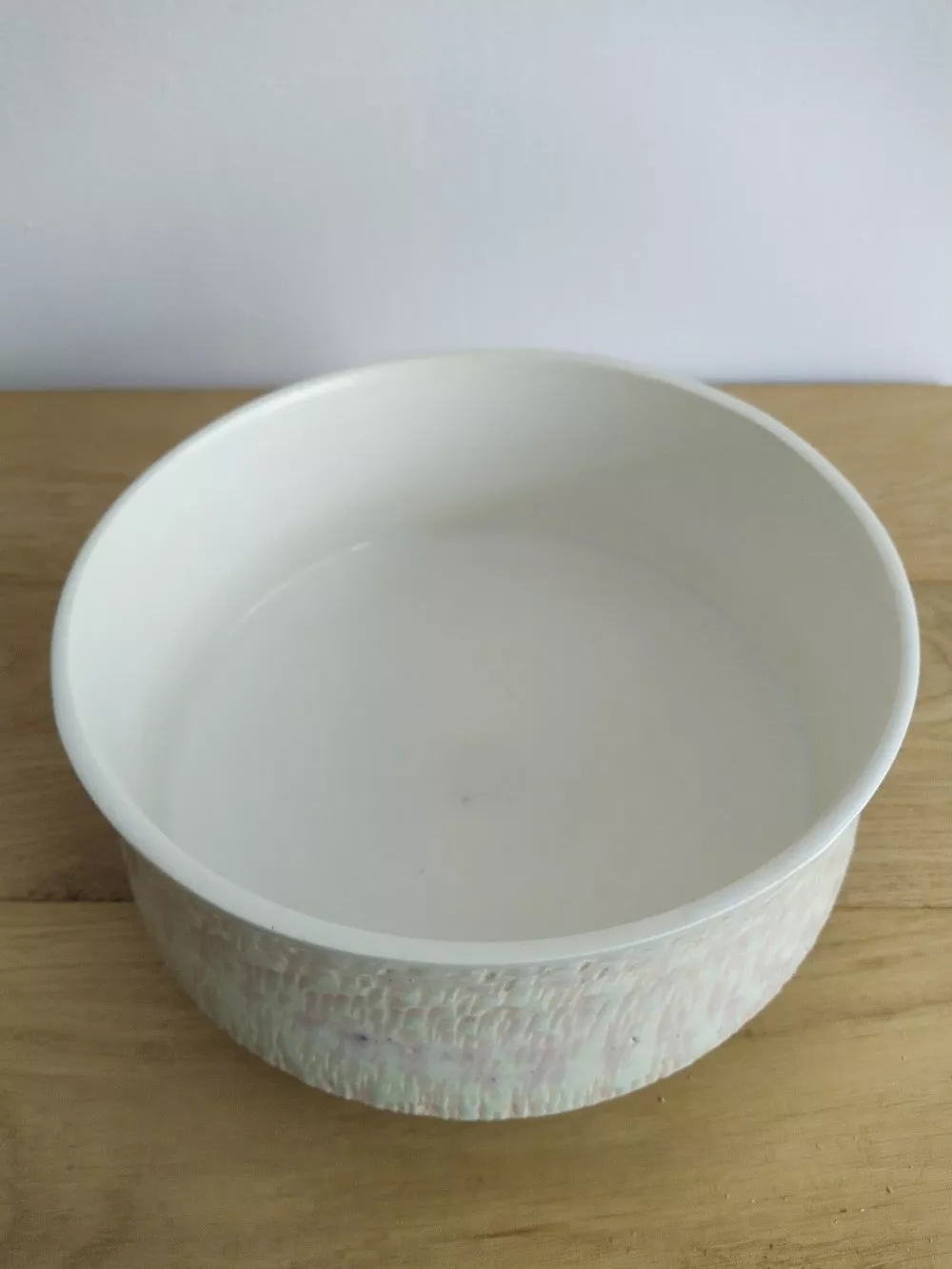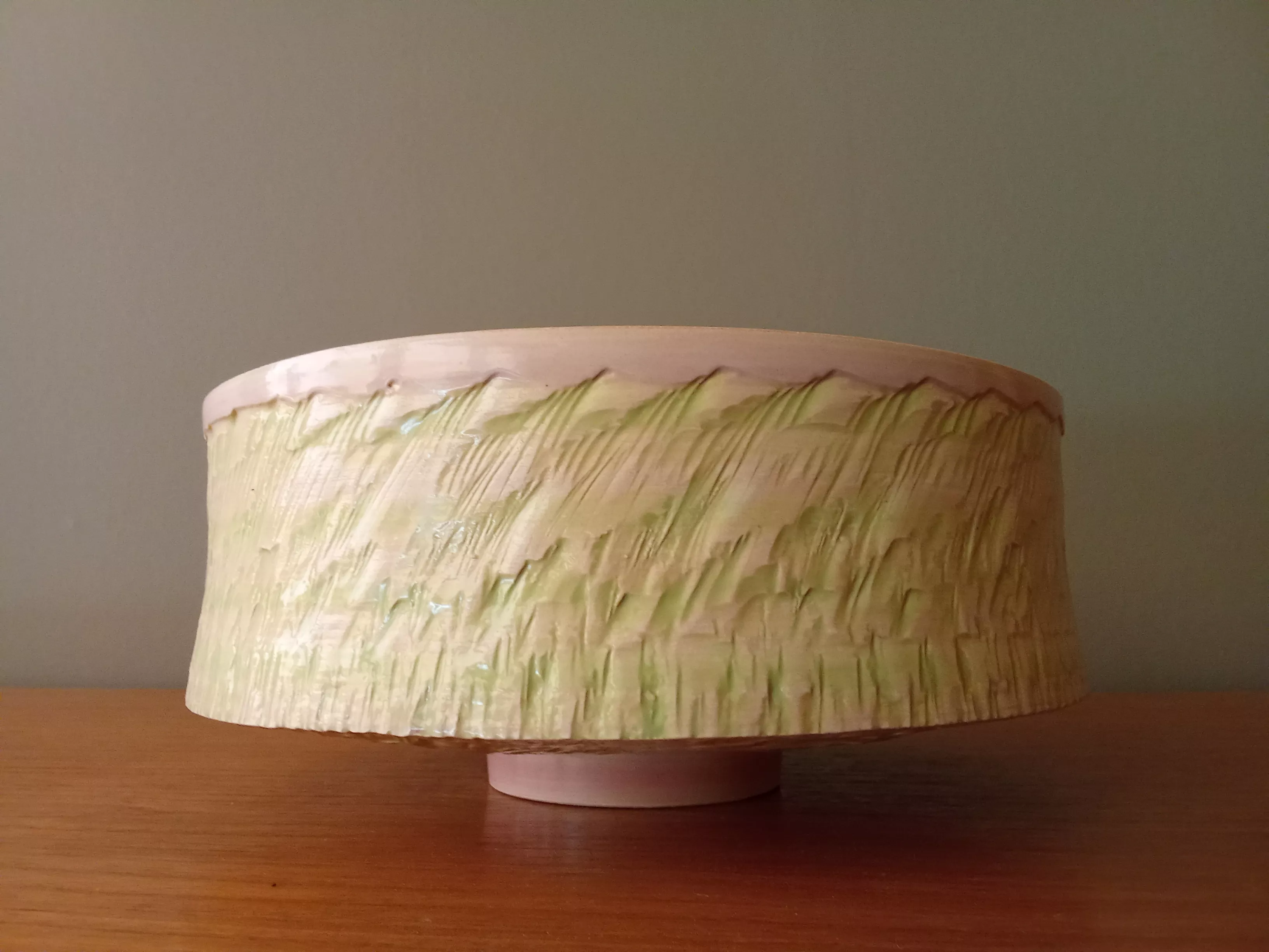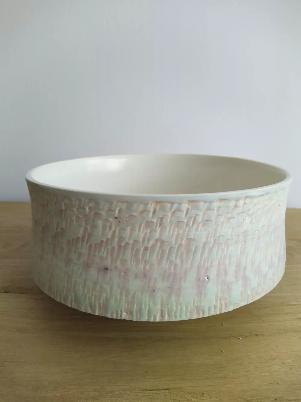 Ces coupes résultent de l’assemblage de deux formes tournées, qui permettent cette ligne de cassure entre le haut et le bas, tout en créant un ensemble harmonieux dans la réunion de ces opposés. Le décor de la partie inférieure dessine, de façon plus évidente encore que pour les bols plus petits, un véritable mandala.